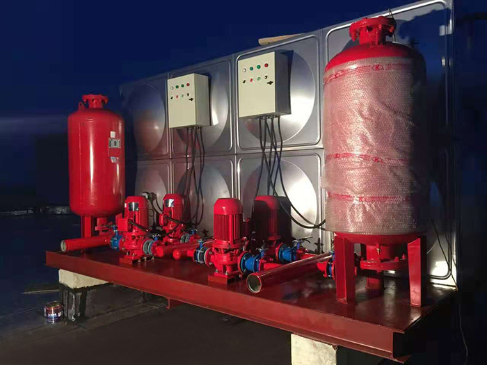 地埋式消防自动恒压给水设备工作原理: 本产品采用变频控制的一种恒压设备,当消防管网泄漏或其它情况下压力下降时,就通过消防管网上的压力传感器把信号传输到变频控制系统中,然后经控制系统中的模拟量模块和PLC的分析处理,它发出指令使变频器根据压力大小输出相应的频率,从而******管网中的压力始终是恒压,若管网的封闭比较好,而且压力长时间下降,PLC就发出指令使变频器和水泵处于休眠状态,当管网压力下降或进入消防状态时,它会立即唤醒消防泵,而且以工频型式进入状态运行。 箱泵一体化的特点 1、无泵房:节省空间,水泵和泵站放置在水箱中且固定在一体化泵站专用模块上。只占用0.5m3~1m3的水箱容积. 2、移动、拆装方便:由于采用装配式BDF不锈钢水箱,改变了以往的焊接方法采用螺丝装配,适用性强,安装方便,无需专用设备。 3、环保:电机配套世界******水浸式潜水电机,无污染、无噪音,同水接触材料都选用******不锈钢。 4、升级简便:留有接口可支持远程传输、自动清洗、杀菌、消毒。 5、维护方便:在正常供水的情况下可对设备进行维护更换。 6、通讯短信模块:它是一种远程控制系统是通过移动手机平台对泵站实现无人监管,发生故障时可以同时发信息至物管、生产厂家等有关管理人员,简单故障厂家可以通过此模块进行排除,如果特殊故障的需派人至现场的,可以通过此模块配合现场的用户解决应急或临时供水。 7、自动巡检:控制系统既具有远程控制接口,且有低频自动巡检功能,无消防信号时,定期对每台泵低频巡检******,******水泵正常运行和系统安全。设备具有过压、过流、过载、无水等多种保护功能安全******。
