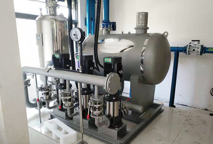它是将稳流罐和高低噪音水泵及机组阀门附件直接串接在市政管网上叠压供水的设备,由于他是直接串接于市政管网节能效果非常明显,同时饮用水在设备内的停留时间较短对水质污染小,结构紧凑占用空间小。